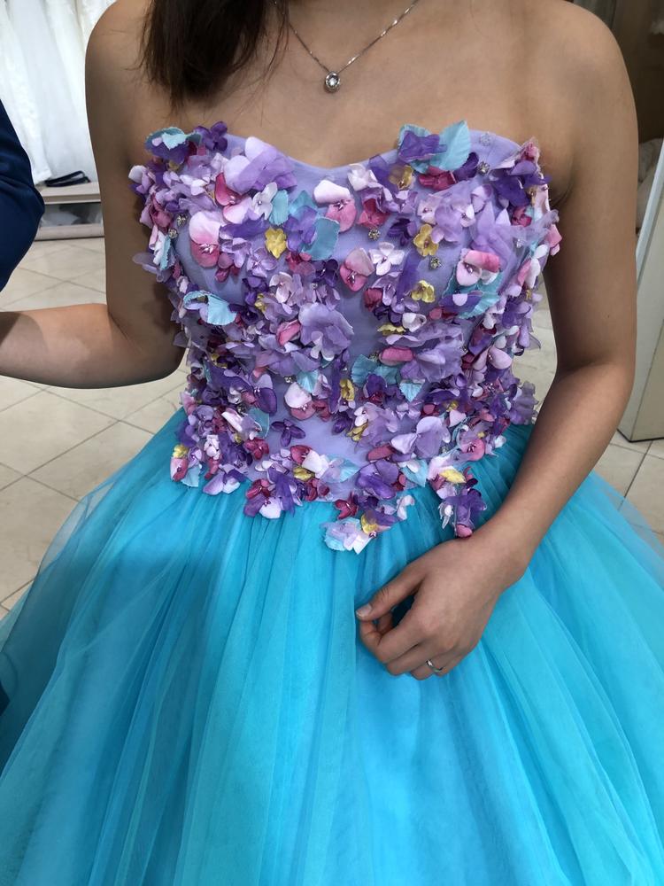 原色からパステルカラーや、個人的に好きなキラキラのスタッズがついたものまでたくさん!決めるのに困るくらい(笑)また形もAライン、マーメイド、プリンセスライン等、たくさん揃っています。