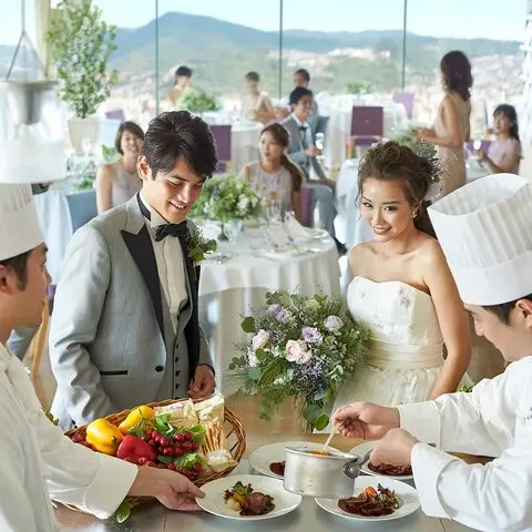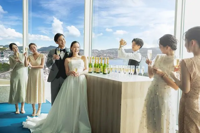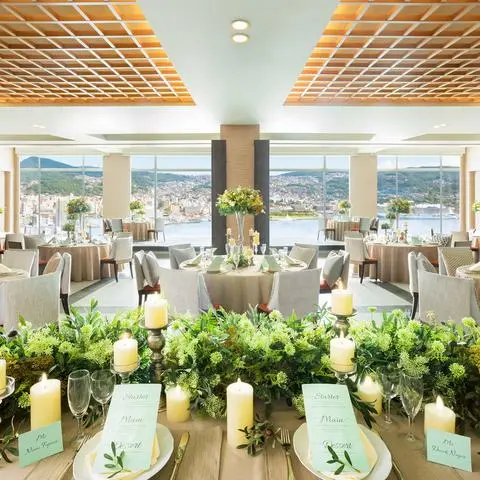 地上150M!世界新三大夜景に認定された稲佐山からの絶景を望む、ウエディングの魅力を詰め込んだホテル。緑豊かな森に佇む独立型チャペルは、開放的なプライベートガーデンでのアフターセレモニーが人気。さらに、長崎市街のパノラマ絶景を一望する個性溢れる5つのパーティ会場や、地産地消の美食でゲストをもてなす婚礼料理など、「まだ未体験のルーク」をまるごと体験できる見学フェアは毎日開催!