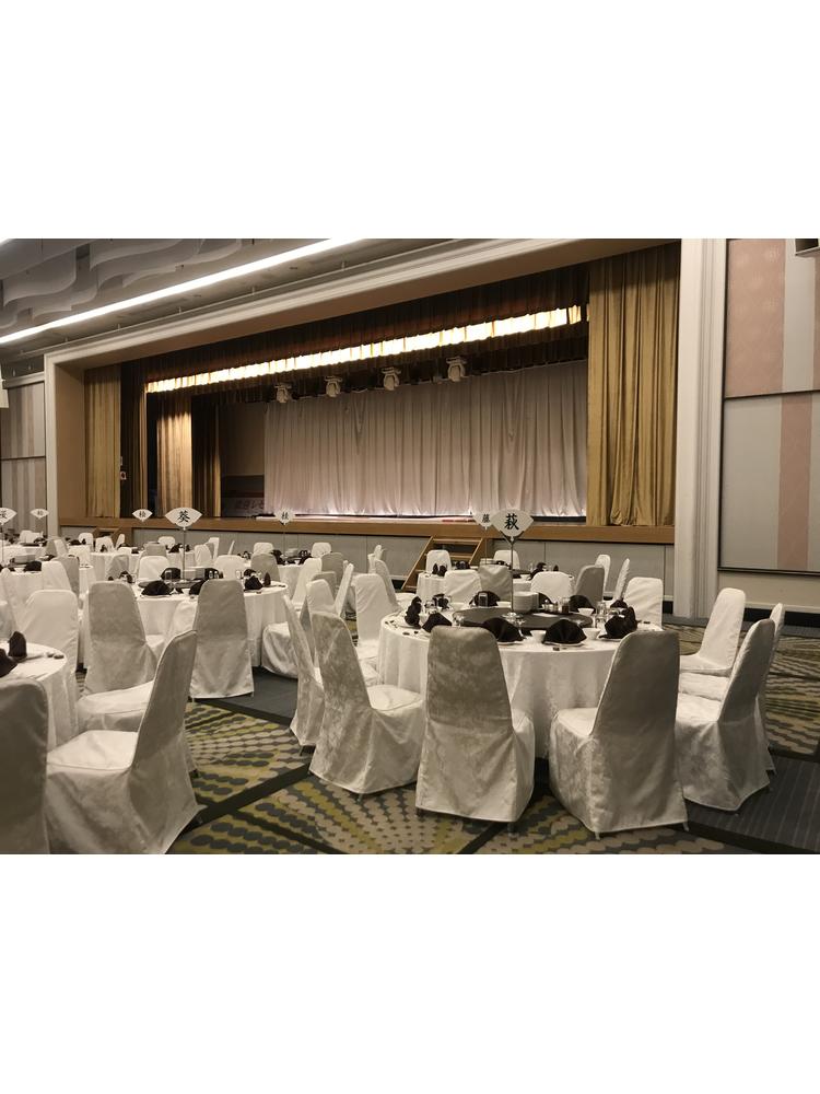 披露宴会場は天井が高くて雰囲気がよかった。舞台も使用できた。ホテルのため、バリアフリー面もしっかりしていてよかった。