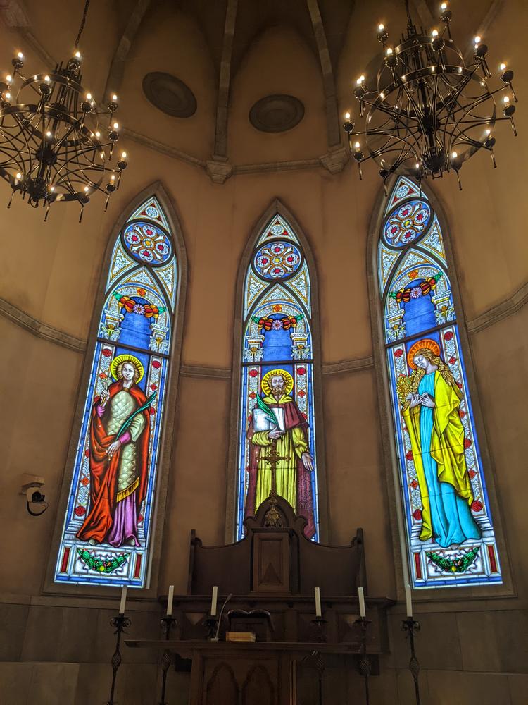 これまで見た中で一番圧倒された挙式会場でした。正面には大きなステンドグラス、高い天井、長いバージンロードの立派な大聖堂です。入った瞬間、すごーい!と思わず行ってしまいます。