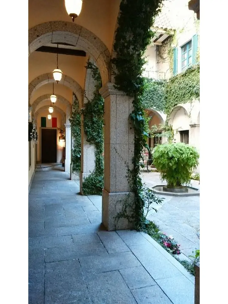 全体的にレトロな雰囲気で、絵になるポイントがたくさんあります。中庭は冬でもグリーンがきれいにうつります。