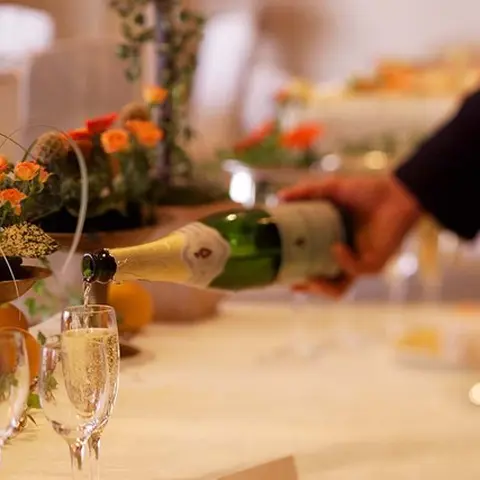 30名様以上での披露宴をご利用の場合、乾杯用のスパークリングワインをご人数分無料でサービスいたします。