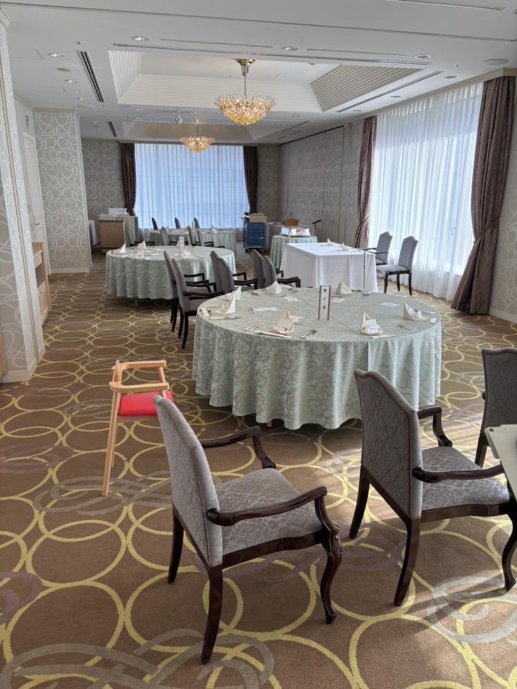 披露宴会場では、少人数婚の場合、部屋を仕切れる。私たちは8人なので、部屋を仕切れてちょうど良い広さにしてもらえそう。