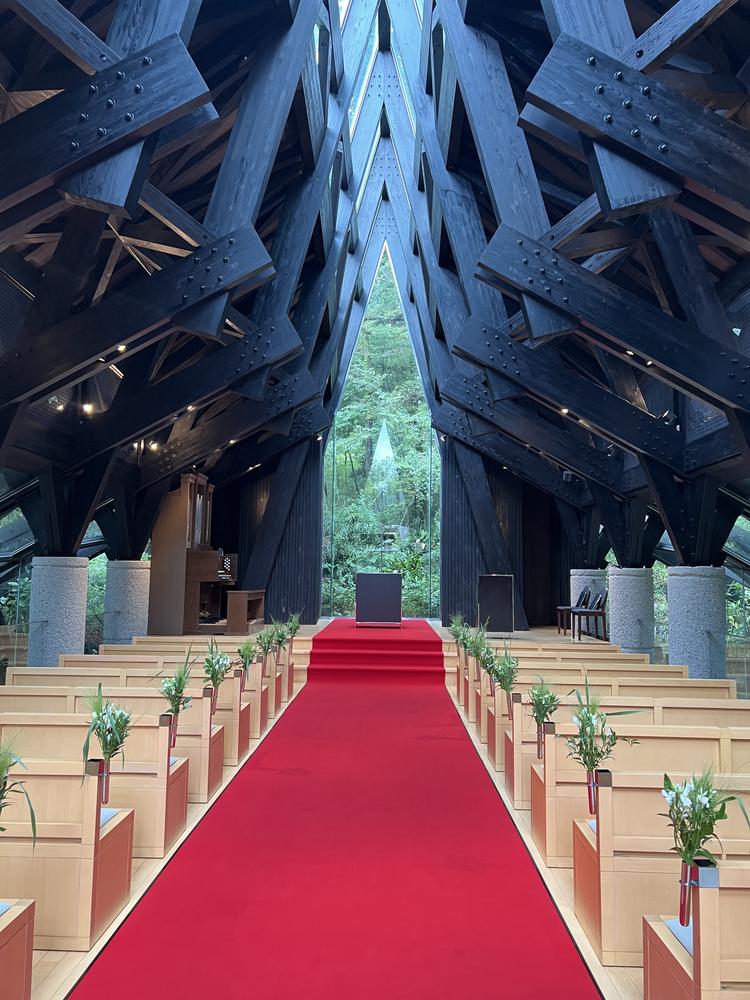 大阪万博公園の中にある「迎賓館」。森に囲まれたチャペルは、ガラス張りの天井から差し込む光に包まれながら、暖かくて優しい雰囲気の結婚式が挙げられます。上品で落ち着いた空間のバンケットルームは、一面の窓から光が降り注ぎ、数々の来賓をもてなした会場ならではの伝統と格式が感じられる空間です。