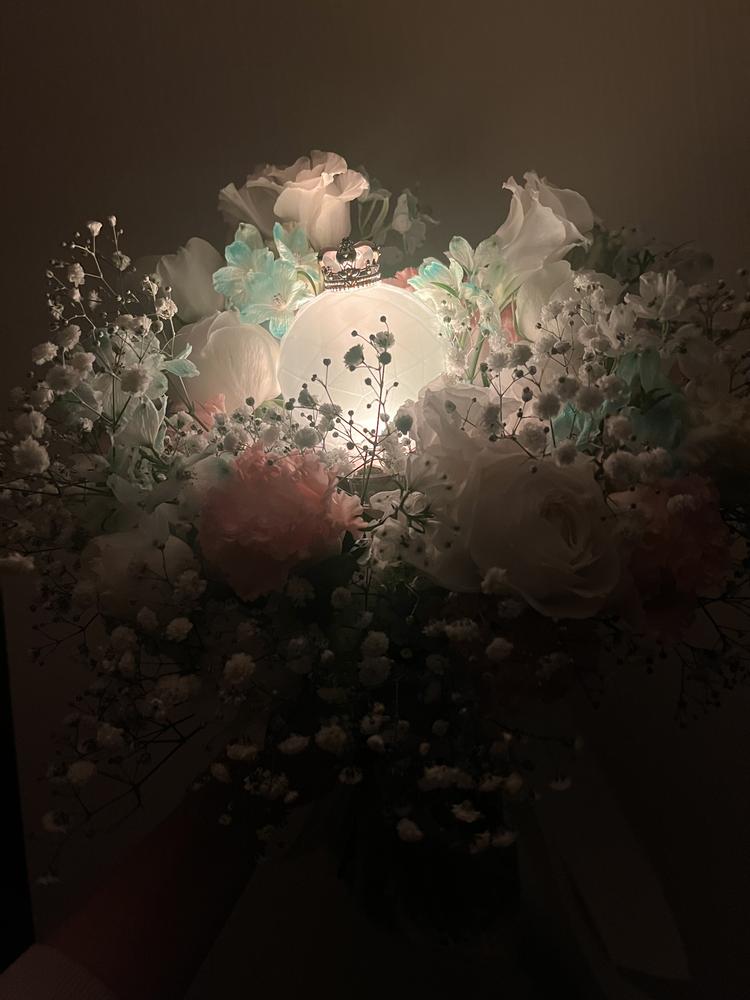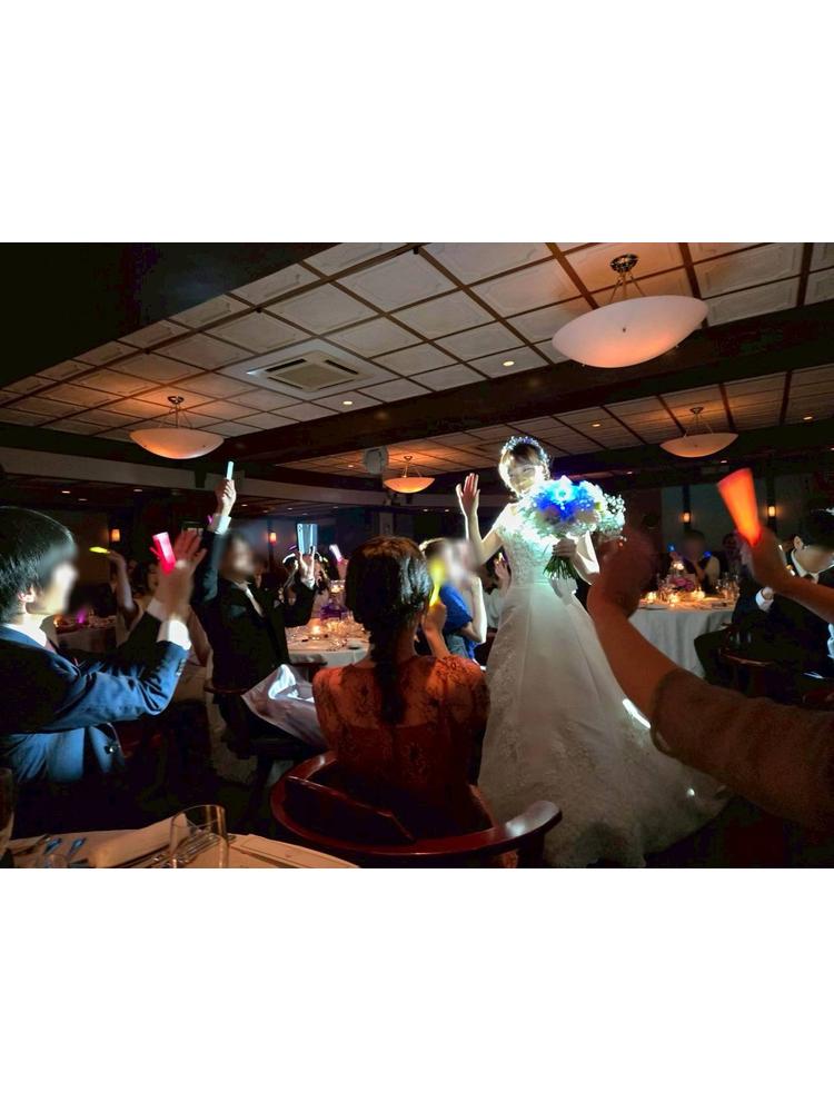 【披露宴入場】アイドルソングにのせてペンライト+ブーケを持ちながら入場しました(花屋さんと打ち合わせしてオリジナルブーケを作ってもらいました)