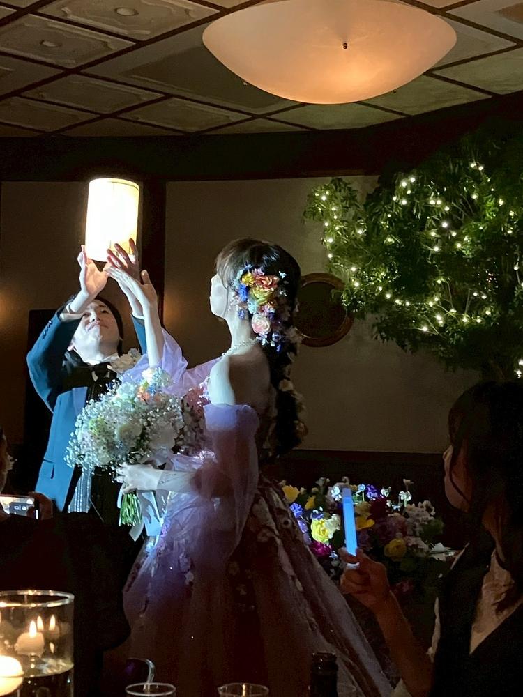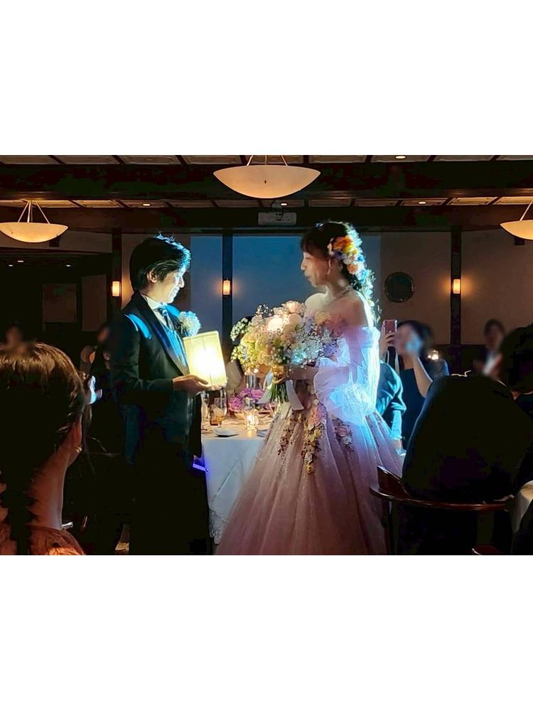 ・お花屋さんも、予算内で理想の形を実現して下さいました。『ゲストテーブルの装花にキャンドルをつけ加えたい…でも予算が倍くらいになる…』と悩んでいたら、ほぼ予算内でできる水に浮かべるタイプを提案下さり、他にも小さなキャンドルを用意して下さり、テーブルがキラキラしてとても綺麗になりました。