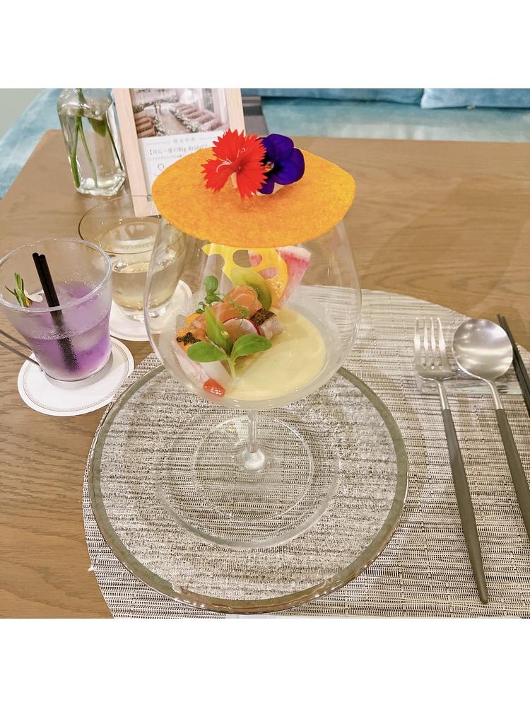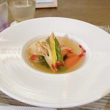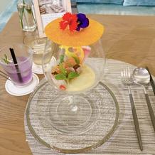 お花をテーマにした結婚式場だったため料理にもお花が入っていたりとユニークなものも多く楽しかったです。