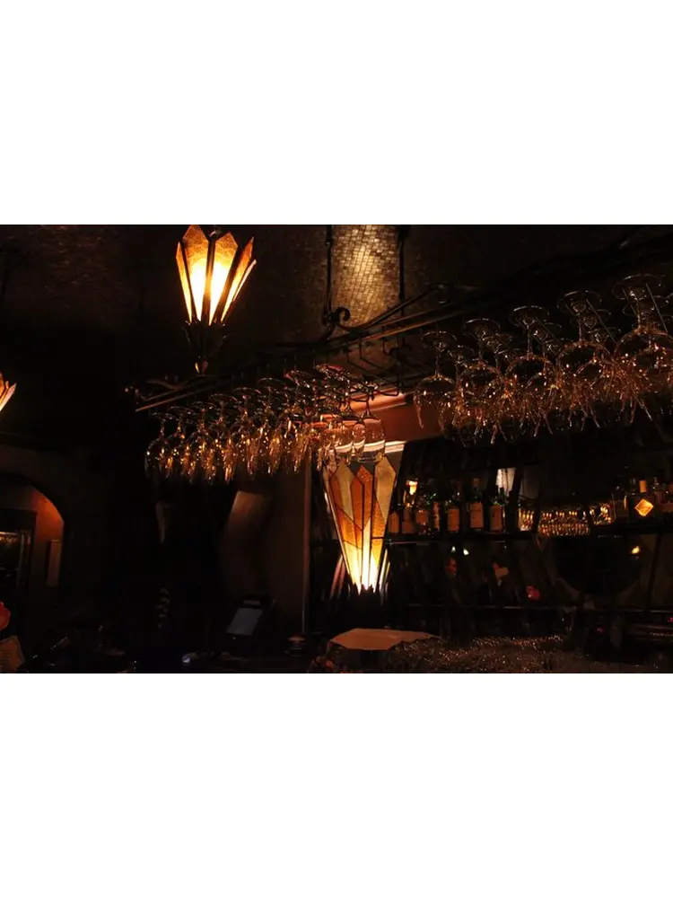 薄暗いエレベーター、ムーディーなバーカウンターを抜けると、天窓もあり開放的な会場。