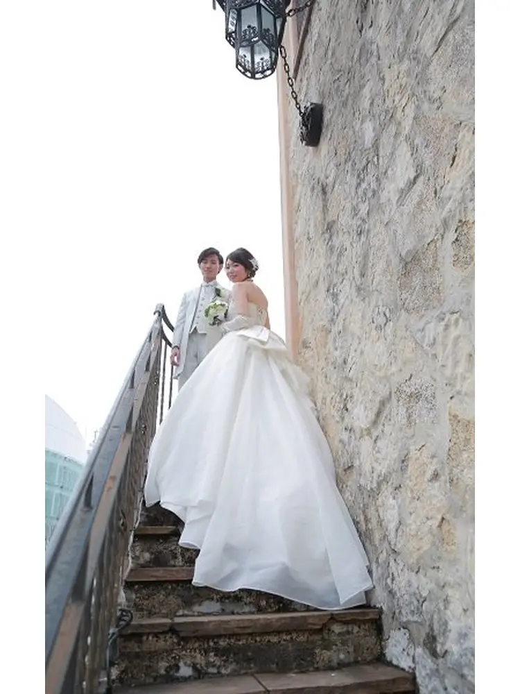 重厚な建物ですので、素敵な写真が多数撮影できます。屋上にチャペルがあり、挙式はサレジオ教会でしたけれど、そこでの青空を入れたイメージカットも撮影してもらえて、それも、素敵でした