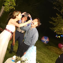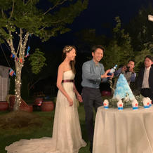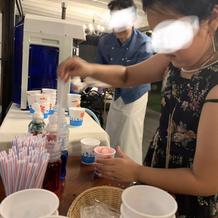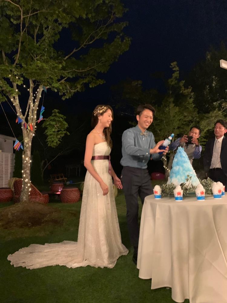 プロジェクターを持ち込んでガーデンで投影したり、ケーキの代わりに巨大かき氷を作ってもらったりと、式場も初めてのことだったとのことで当日まで不安でしたが、全部想像以上の仕上がりでご用意していただき、とっても満足です。