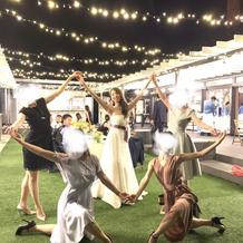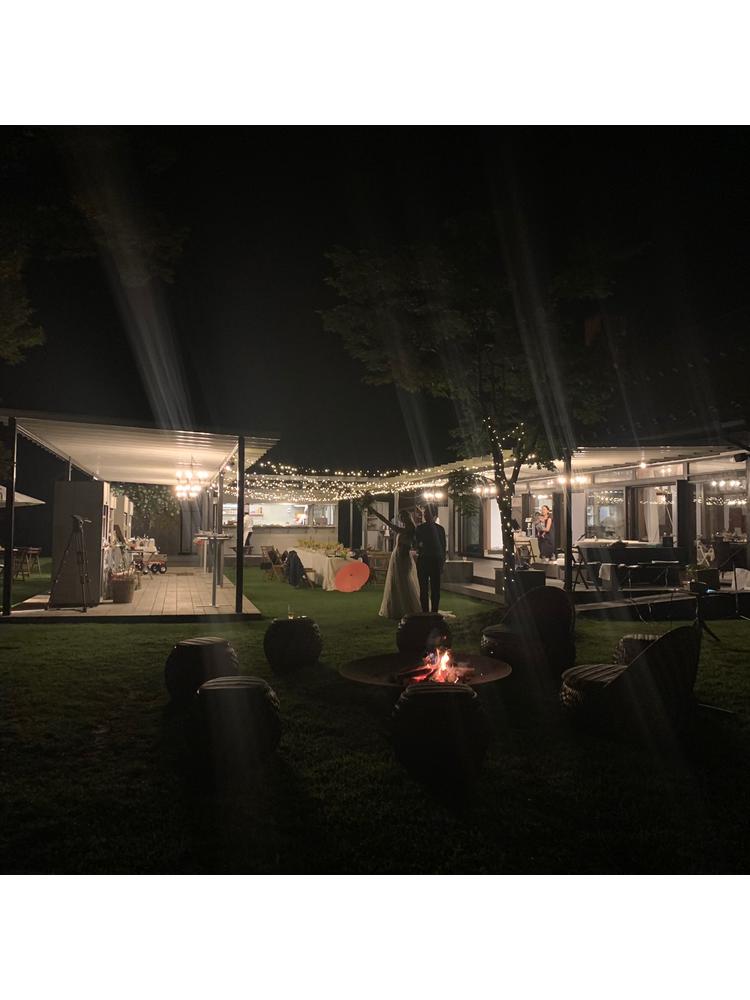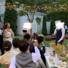 私たちは17時以降の披露宴でナイトウェディングだったのですが、電飾が緑にとても映えていて素晴らしかったです。