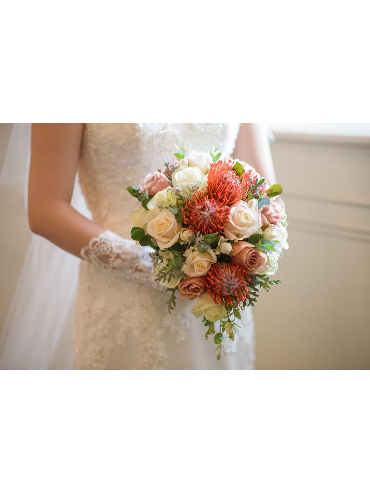 ブライダルフェア時に作っていただいた見積りは最低限の内容であったため、13名で100万円以下でしたが、最終的には150万円くらいになりました。ドレスやブーケ、装花、料理のグレードアップ等で値段が上がっています。ウエディングブーケは注文し、カラードレスのブーケは持ち込みましたが、特に持ち込み料はかかりませんでした。