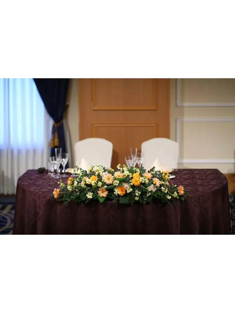 披露宴はヴィオラ会場で行ないました。会場の雰囲気とテーブルコーディネートがよく合っていて程よい高級感を出せていて満足しました!また当日は天気にも恵まれ窓から自然光も入り明るい雰囲気も出ていました。ただ移動の際にテーブルとテーブルの間の間隔が少し狭く移動しづらかったです。