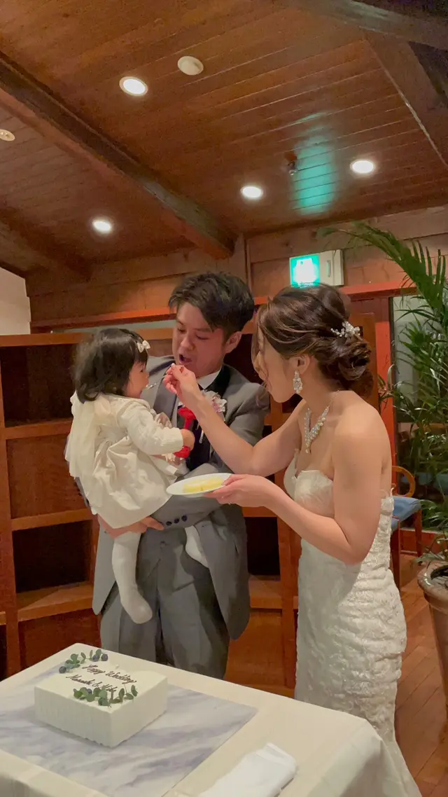 おふたりのファーストバイトをした後に、お子さまにとって生まれて初めてのケーキということで、お子さまにもファーストバイトをする演出をおこなったそうです。
