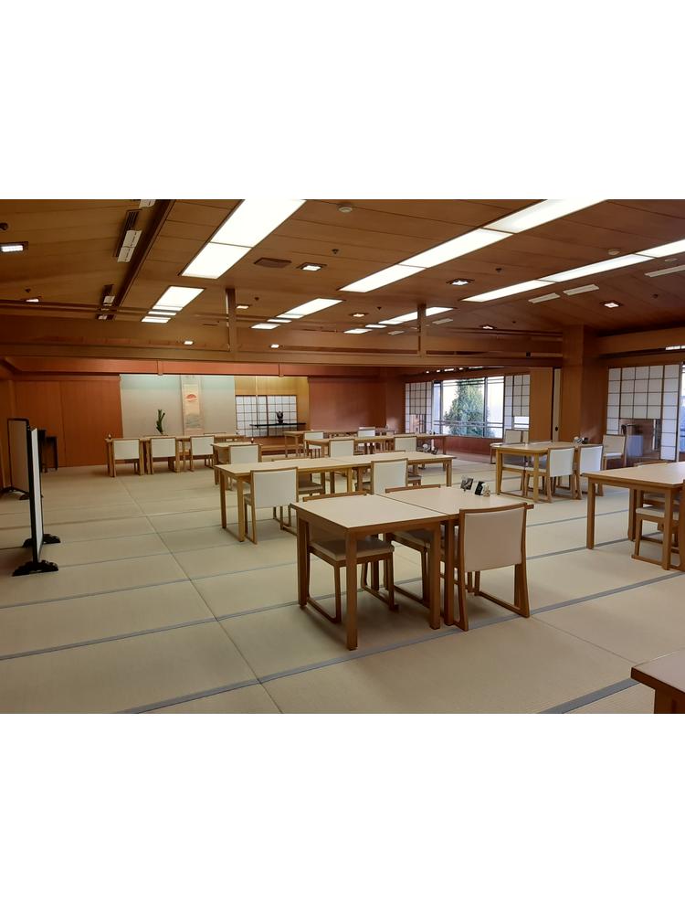 挙式会場は畳に机といすです。入り口やロビーは旅館のような雰囲気もありますが、持ち込み等が自由にできるため装花や飾り付けでどうにでもできると思います。円卓はないようでした。控え室も十分な広さがあるように見えました。春には川沿いの桜が綺麗とのことでした。