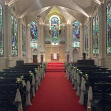 ステンドグラスがチャペルの全面にあり本当にどこを見ても素敵でした。退場時の扉の奥にまでステンドグラスがありそこが凄く素敵で、新郎と共に凄く気に入りました!
