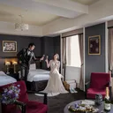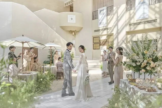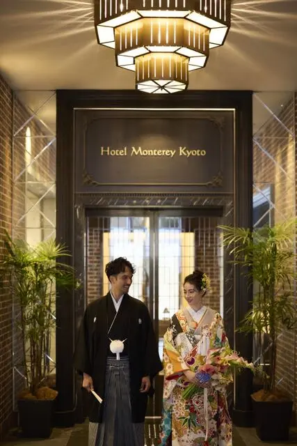 烏丸御池駅より徒歩2分、京都駅からも3駅とアクセス抜群な「ホテルモントレ京都」。ロンドンに実在するチャペルを再現した「セントサイモンゼロテス」での挙式。ステンドグラス越しの柔らかな光に包まれます。平安神宮での挙式も可能。文明開化期の京都をイメージさせる「ホールアークハート」。格子天井風の天井やオリジナルデザインのシャンデリアなど、和文化の粋を感じさせる温かみのある会場。邸宅風の「エスカーレ」、気品ある「ケンジントン」もお選びいただけます。