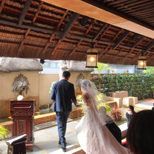 本当にバリに行ったような雰囲気でリゾート気分が味わえたと親族にもゲストにも満足していただけました。披露宴会場も普段はレストランということで、広いわけではないですが、逆にゲストとの距離が近くて良かったです。私たちは特に気になりませんでしたが、新郎新婦控え室はかなり狭めです。親族控え室はお呼びする人数にもよるかもしれませんが、十分な空間でした。