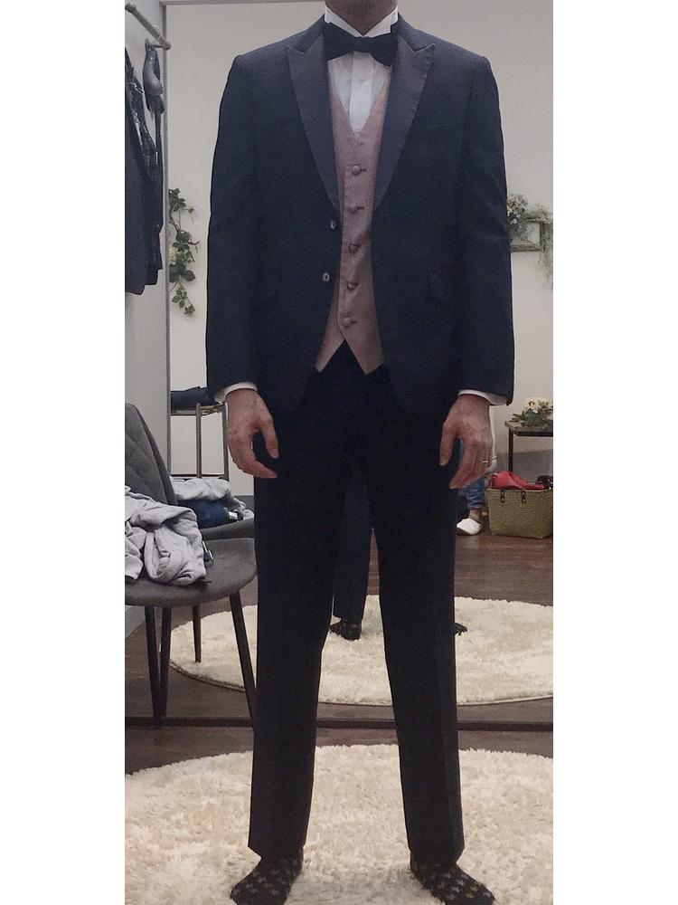 提携のショップが心斎橋でとてもアクセスしやすかったです。新郎と新郎の母の衣裳をお借りしました。担当の方はとても丁寧に対応していただけました。点数が豊富ということはないですが、かなりデザイン性が高いお洒落なタキシードからシンプルなのまで用意されていました。母の留袖は基本カタログを見て選ぶ感じで試着はありませんでした。2人とも高身長で袖や裾の丈を心配していましたが、色々と問い合わせして寸法を細かく聞いてくださり、特に心配することはありませんでした。本番は2人ともジャストサイズの衣裳を用意できました。