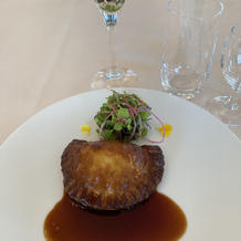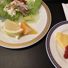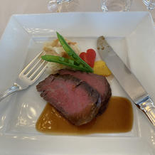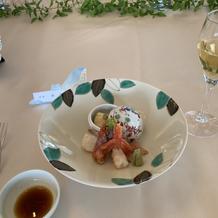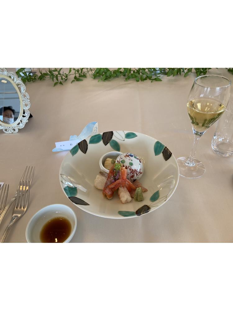 両家の父親が和食が好きなこともあり、和洋折衷の料理を追加料金なしでオーダーすることができました。お刺身や、天ぷら蕎麦も出て、とても好評でした。野菜がハート型に切ってあったりとかわいい演出がいっぱいでした。ウェディングケーキもとても美味しかったです!