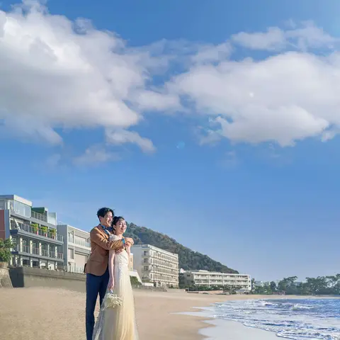 1件目のご見学の方限定!リゾート地ならではの人気ロケーション撮影が叶うアルバムのご優待特典!先輩花嫁たちの人気№1アイテムを1件目のご見学でGETしよう♪海と富士山を望む最高ロケーションで、一生に一度の思い出の1枚を結婚式とまとめて残すチャンスをお見逃しなく