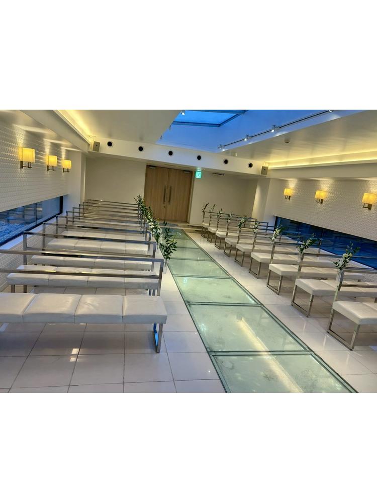 また、チャペルが最上階にあり、隣のテラスからは海が一望できることで挙式前後にもゲストが楽しめる姿が想像できました。