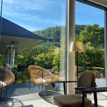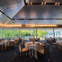 会場全体をご案内いただき、挙式の進行でガラス張りのチャペルでチャペルに入る前から姿が見えるので、新婦が父母それぞれと歩ける所は特徴的でした。受付やウェルカムスペースは50人規模では非常にゆったりしていて、それも良い点でした。