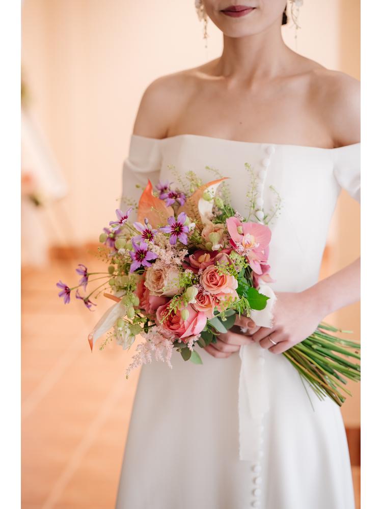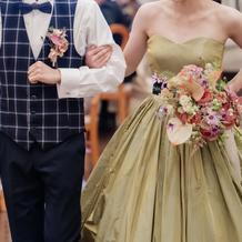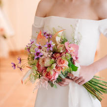 ドレスは並んでいるものから自分の好みを選ぶスタイルではなく、スタイリストさんが希望を聞いてそれに近いものを持ってきてくれるというスタイルでした。式場独自のドレスやインポートのドレスも多く、試着で何度も悩みました。ドレスの金額は幅が広く、きてから驚くこともあるかもなので、ある程度の額をお伝えしておけばそれに見合うものを提供してくれます。
