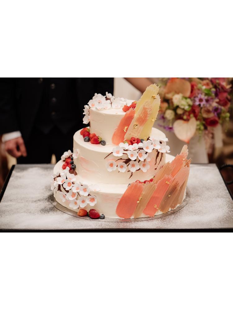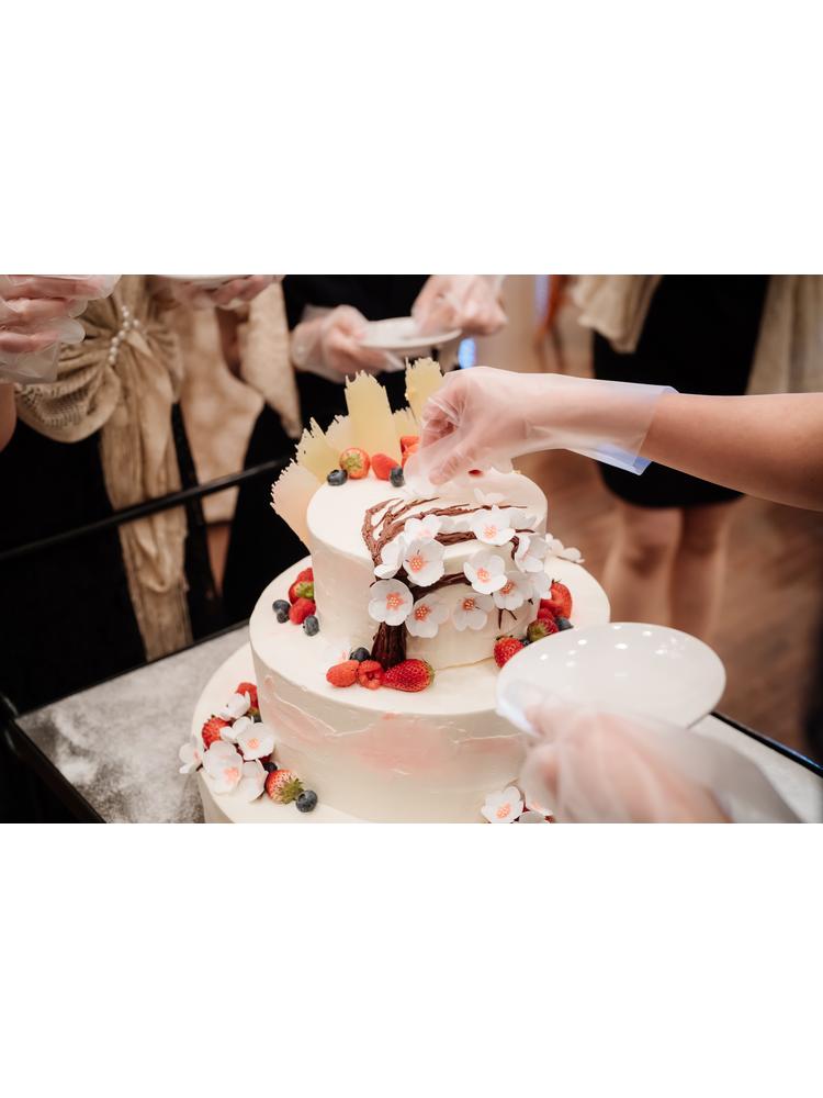 料理部の友人と協力してウエディングケーキの仕上げをしたいと伝えたところ、とても素敵なケーキを作っていただきました。過去に戻って皆で料理した気持ちになりました(^^)