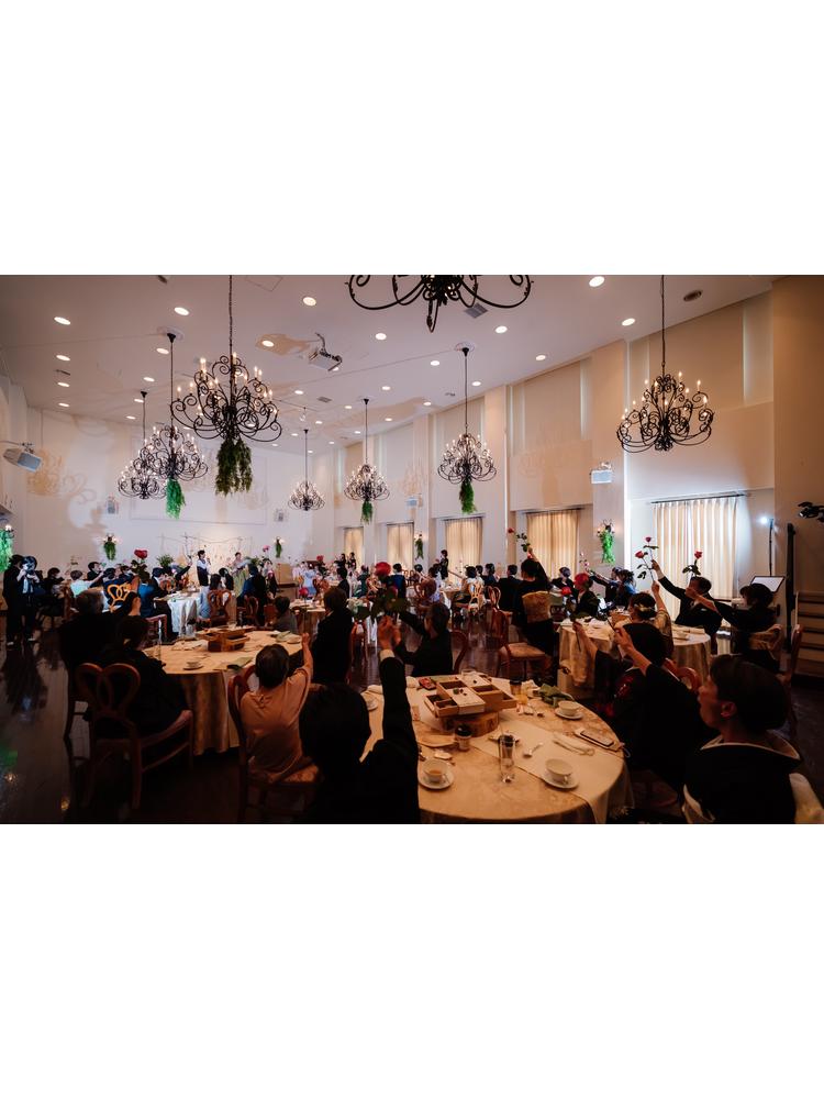 夫からサプライズで会場内の皆に1人1本のバラを掲げてもらったときは、スタッフの皆さんがとても手際良く丁寧に説明してくれたと聞いています。