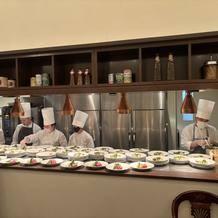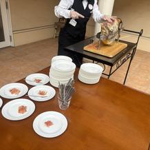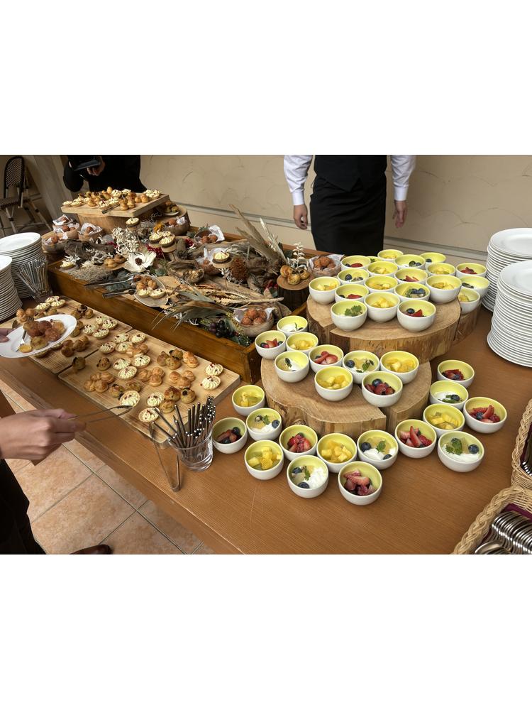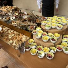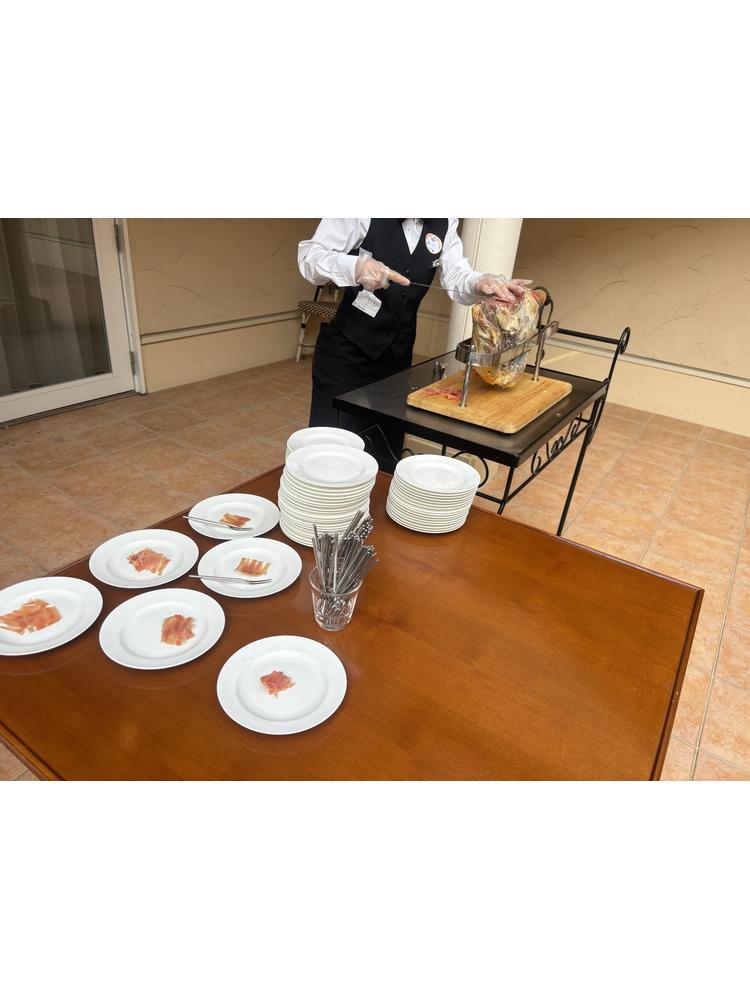 外での立食形式があり生ハムをその場で切ってくれたりビュッフェを楽しむことが出きた。
