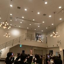 エンディングムービー等の演出が非常に良く、感動しきりでした。披露宴会場では一人一人のテーブルの上に手書きの手紙が用意してあり、新郎新婦から参列者への感謝を伝えるような演出が素晴らしかったと思います。新郎新婦のお色直し後の再入場では2階から登場したりとオリジナリティのある演出も素敵だったと思います。