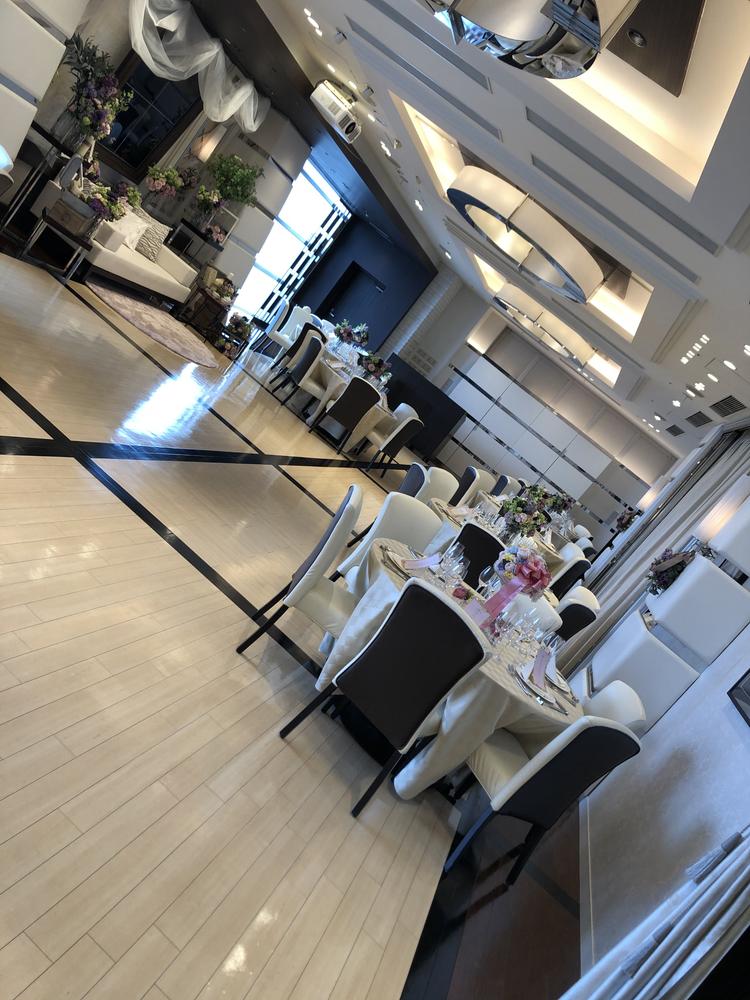 挙式会場は最上階にあるという珍しいタイプで曇りの日でもとても明るく見え、雰囲気が綺麗なかんじだった。