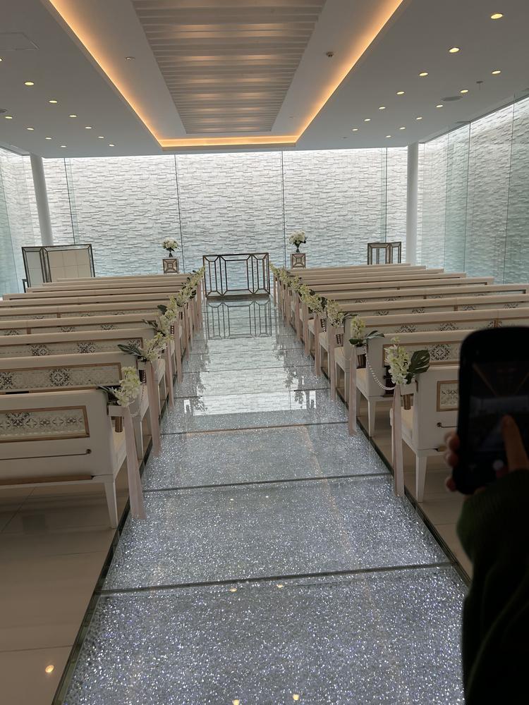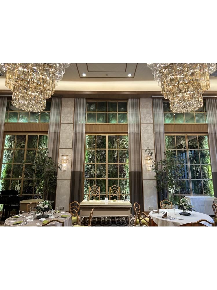 挙式場はとても素敵で全面ガラス張りなのでとても開く感じました。また披露宴会場も一面が植物でとても素敵な会場でした。