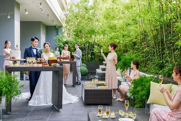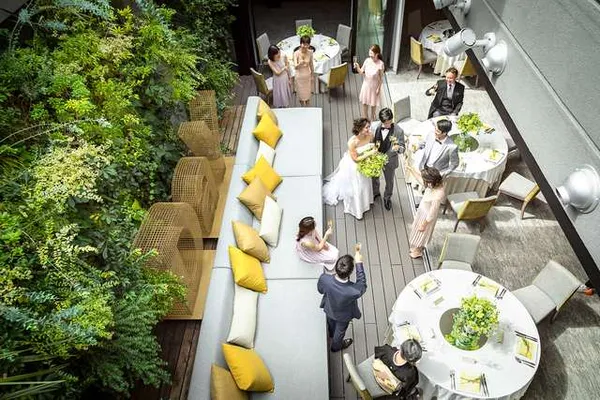 広い空と、心地よい風を感じるガーデンテラスで、最旬のウエディングスタイルを。ウェルカムパーティやデザートタイム、様々なシーンをフォトジェニックに彩るアイテムが沢山!ドレス姿も和装姿も美しく映える、最先端の和モダンな雰囲気も人気の理由です。