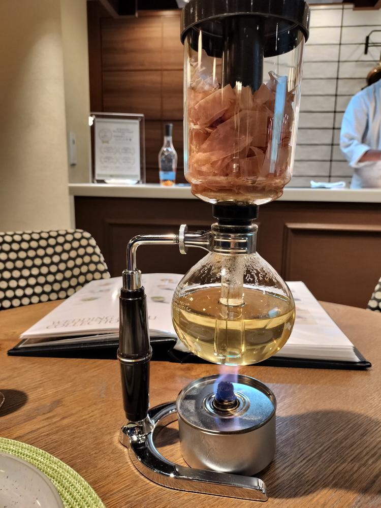 サイフォンで出汁を取るパフォーマンスはとても面白かったです。