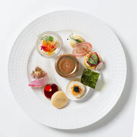 世界各地の厳選食材を仕入れ、素材の味が活きる料理を生み出し、おふたりのパーティを華やかに演出し、おふたりとゲストの記憶にいつまでも残っていく、そんな「物語のある料理」がコンセプト。和洋折衷の\10000~\18000まで選べるコース、ゲストも笑顔になる美食をお楽しみください♪