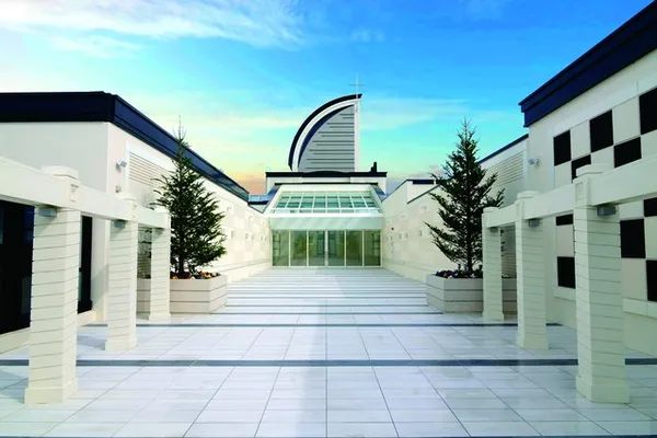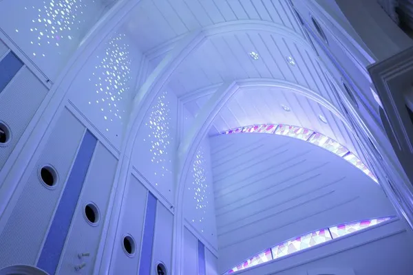 | 天井高 | 天井高20mのなだらかな弧を描くブリッジスタイルの大聖堂 | |