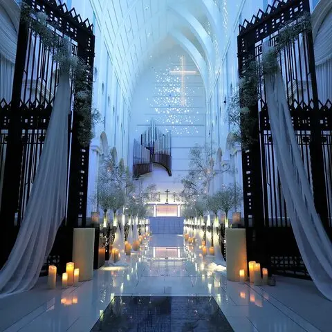 パイプオルガンの音色や聖歌隊の声が響き渡るロマンティックな感動挙式は