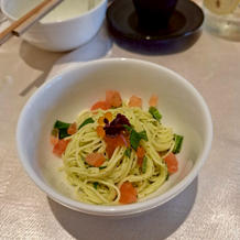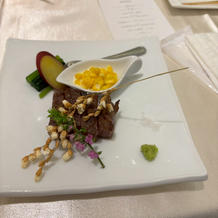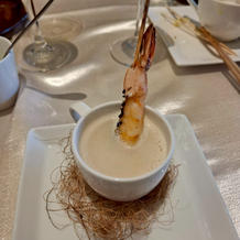 試食会で食べ比べをして、メニューを組み合わせました。お酒好きな参列者が多かったので、アテになるようなものも取り入れました。新郎新婦の入場前からお酒やアラカルトが卓上に準備してあり、待つ時間も楽しめたようでよかったです。料理もとても好評でいろいろと考えたことを喜んでもらえて嬉しかったです。