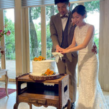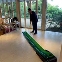 受付後にフラワーベースに一筆塗りをしてもらったり、挙式ではリングリレーをしてもらったりと参加型にしたことで皆で式を楽しめてよかったです。ガーデンでは、シャボン玉の演出の中登場して祝福してもらったり、写真撮影を楽しんだりできました。披露宴では、歓談をメインにしつつ、途中パターゴルフ対決を取り入れたことで大盛り上がりでした。