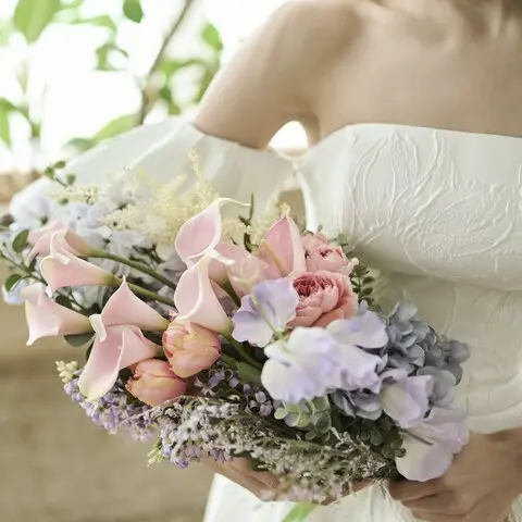 ご成約後のお打ちあわせで専属フローリストと花材や色味など、お好みの雰囲気で選べる会場装花。