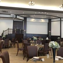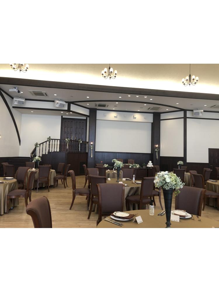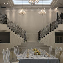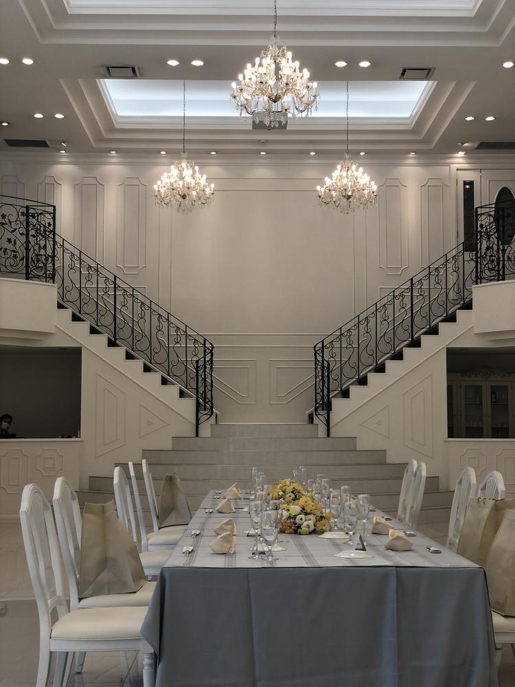 入ったらすぐ広いガーデンがあるのでそこで一気に世界観が作られていて素敵でした。披露宴会場は二つあり、両階段がある方は白で統一されていてお姫様になったかのような雰囲気になれる素敵な会場でした。もう一つの方は茶色を基調にしていて落ち着いた雰囲気になっておりおもてなしの面で素敵な会場でした。