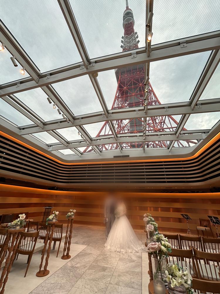挙式会場は晴れていると天井の窓から光が差し込み東京タワーがとても綺麗に見える感動的な式場です。披露宴会場もいくつか候補があり見学したときに自分がしたいと思う式の雰囲気に合わせて選びました(私はカジュアルで暖かい雰囲気)披露宴は30名程度で行いましたが、ちょうど良い広さかな!と感じました。