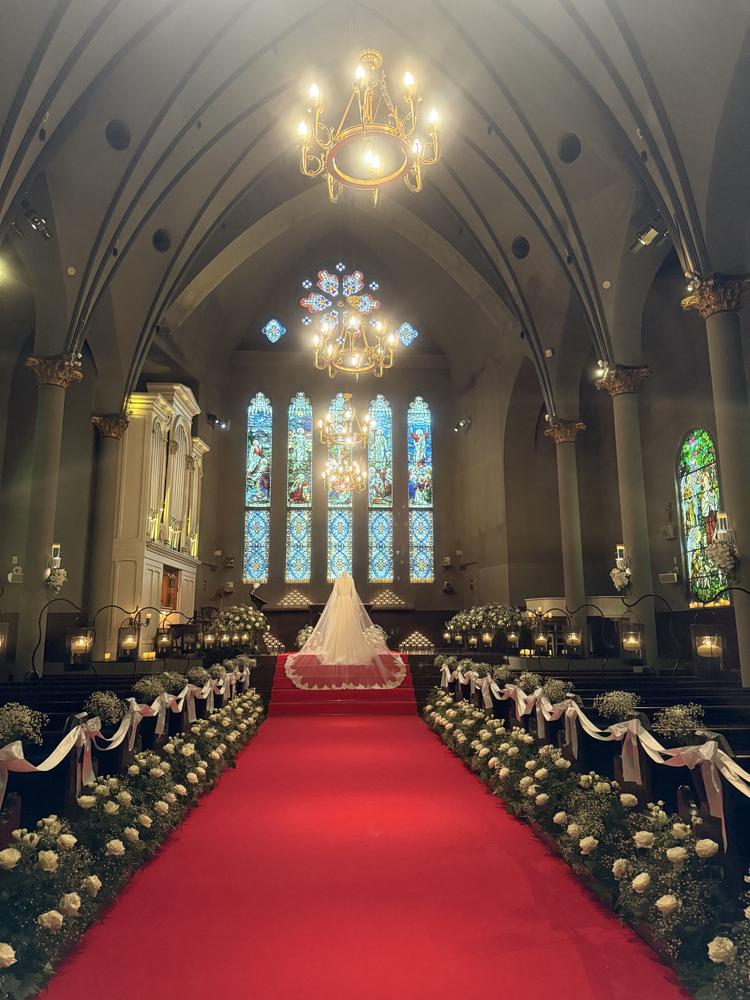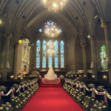 教会の天井が高く、開放感がありました。ステンドグラスの装飾がとても綺麗で幻想的な雰囲気でした。