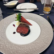 全体的においしく、特に魚のパイ包みとポタージュ、スイーツ全般、ドリンクはおいしかったのですが、下記のようにある一品だけおいしくなかったです。また、当日お肉料理の提供が遅れたのか、私たちの食べる分は少し硬かったです(ゲストからは柔らかかったといわれたので、提供時間の問題かと思います)。