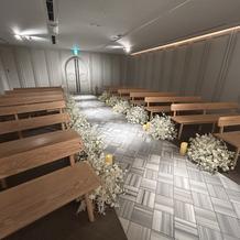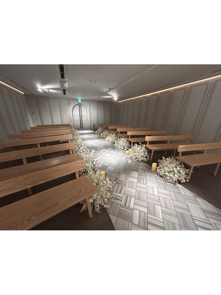 チャペル内の光の演出がとても素敵でした!バカラ製のシャンデリアも写真映えしそうな感じです。チャペルドコフレさんの名前の由来も素敵だなと感じました。