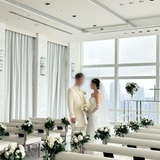 高層階で空の上にいるようなチャペルでしたが、天気が曇りだったこと、時間帯が夕方だったこともあってすこし曇った空が残念でした。