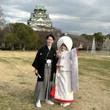 西の丸庭園で大阪城を背景としたガーデン挙式でした。格式高く、大阪らしいロケーションが素晴らしかったです。披露宴会場も歴史あるクラシカルな雰囲気が素敵でした。