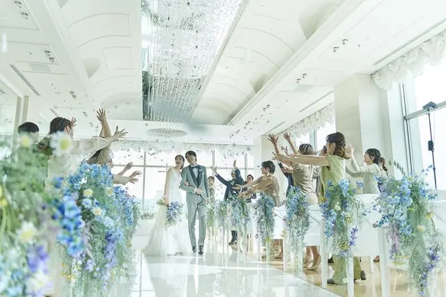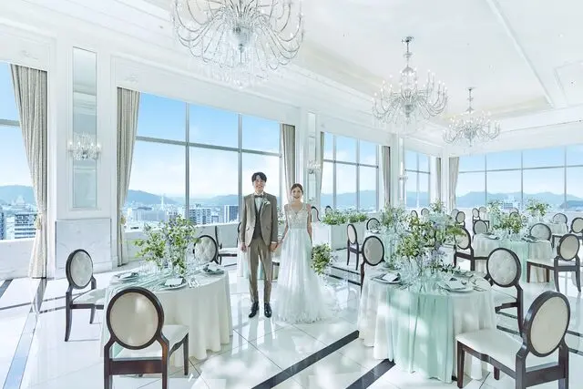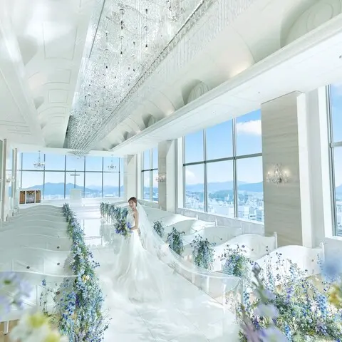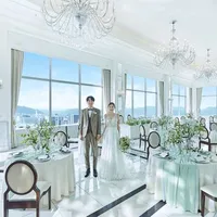 挙式会場は、ホテルの最上階で景色も綺麗で自然光が沢山入ってきます。